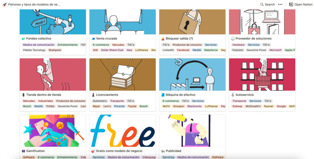 Acceso a base de datos de +55 diferentes patrones de modelos de negocio